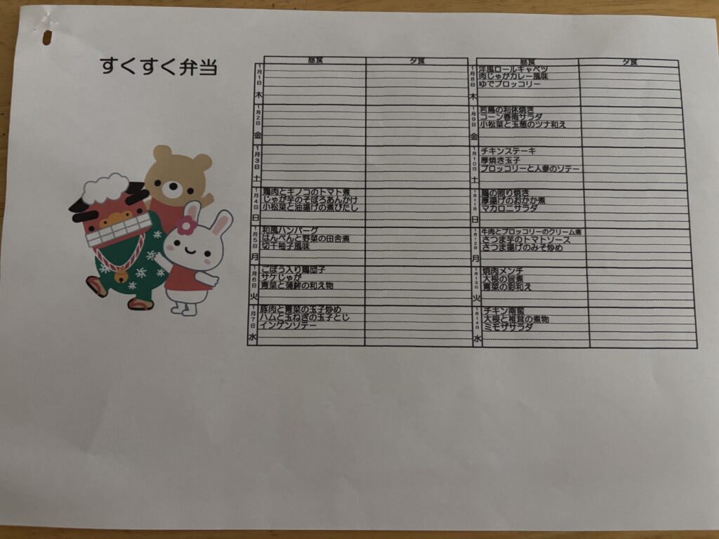 1月の献立表